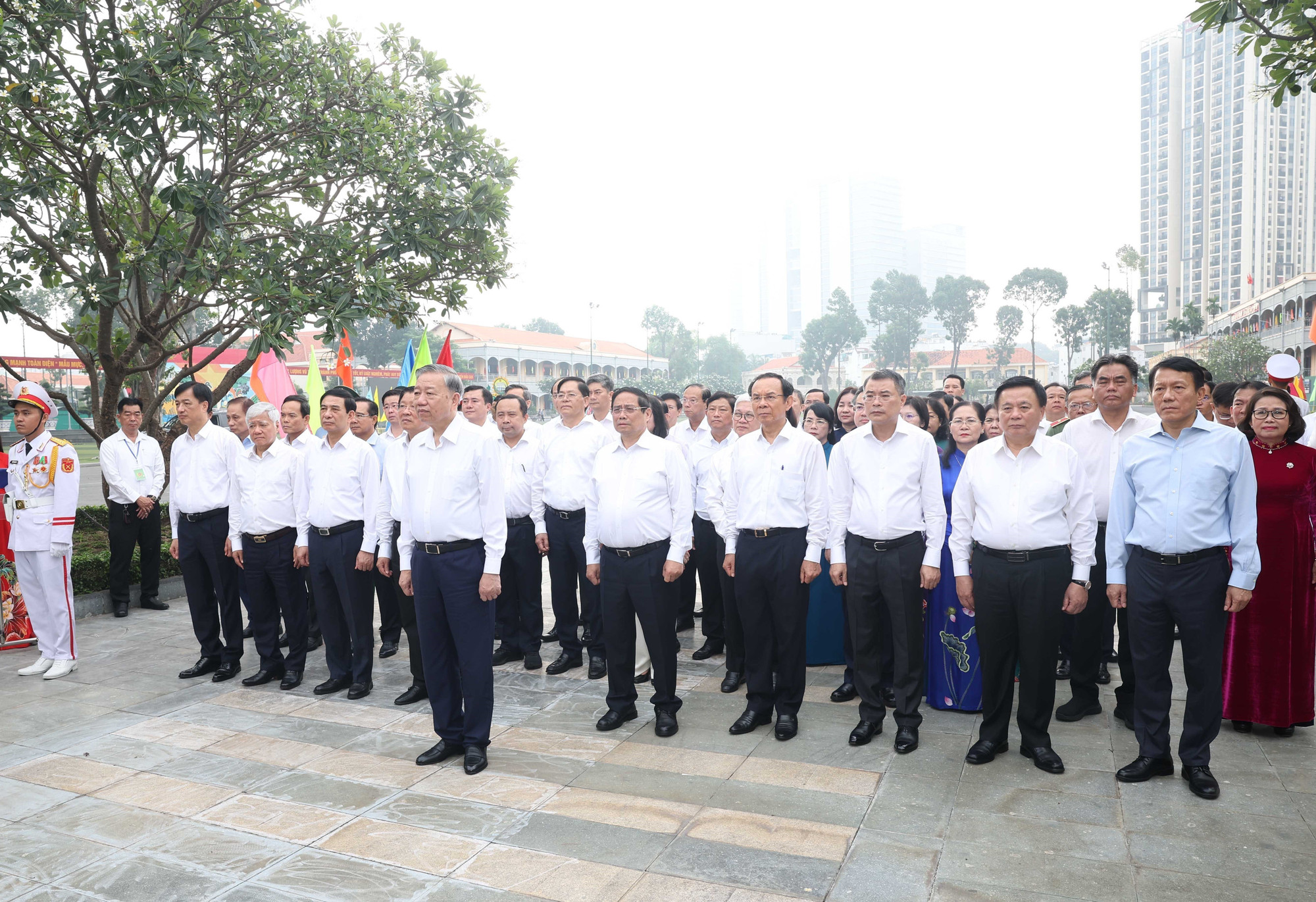 | Tổng Bí thư Tô Lâm cùng đoàn công tác dâng hoa, dâng hương tưởng nhớ Chủ tịch Hồ Chí Minh tại Tượng đài Chủ tịch Hồ Chí Minh trong khuôn viên Bộ Tư lệnh TP.Hồ Chí Minh. |