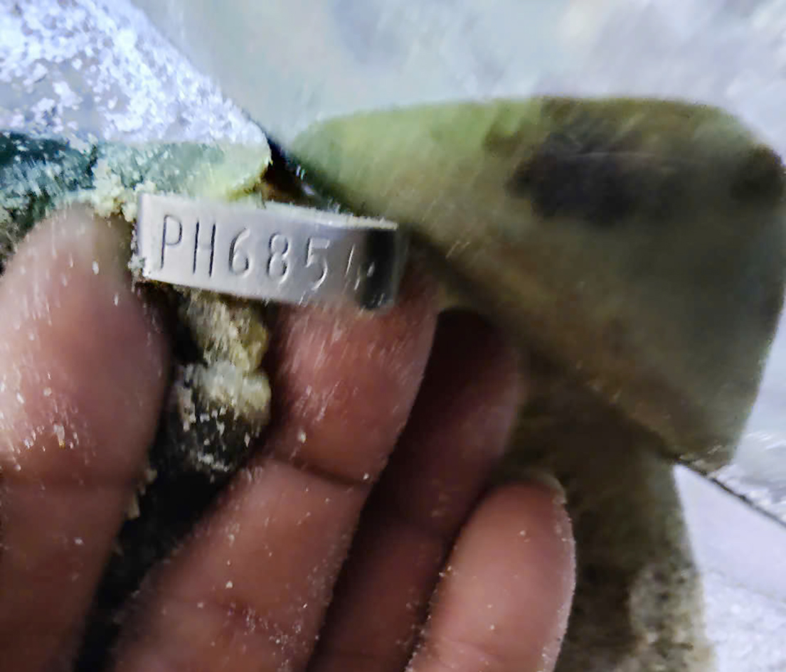Trước đó, tối 22/5, trong quá trình cứu hộ rùa mẹ đẻ trứng, nhân viên BQL Vườn Quốc gia Côn Đảo phát hiện chi trước bên trái của một rùa mẹ có thẻ đeo ký hiệu Ph6854. Đây là ký hiệu quản lý, theo dõi rùa biển tại Philippines. Rùa mẹ Philippines thuộc loại rùa xanh (còn gọi là vích) có kích thước 93cm x 84cm, đẻ được 84 quả trứng. Sau khi hộ sinh cho rùa thành công, BQL Vườn Quốc gia Côn Đảo bấm thêm thẻ của Việt Nam mã CD 4699 tiếp tục theo dõi quá trình di chuyển của rùa.