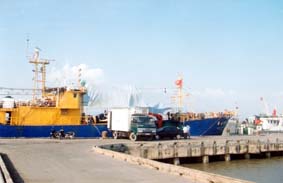 | Tàu nước ngoài đang "ăn" hàng hải sản chế biến xuất khẩu qua thương cảng Vũng Tàu. Ảnh: Mai Thảo |