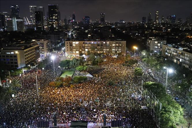 Ngày 11/7, hàng ngàn người Israel đã tham gia cuộc tuần hành tại quảng trường Rabin ở TP.Tel Aviv phản đối cách thức chính phủ nước này xử lý những tác động về kinh tế do dịch viêm đường hô hấp cấp COVID-19 gây ra.
