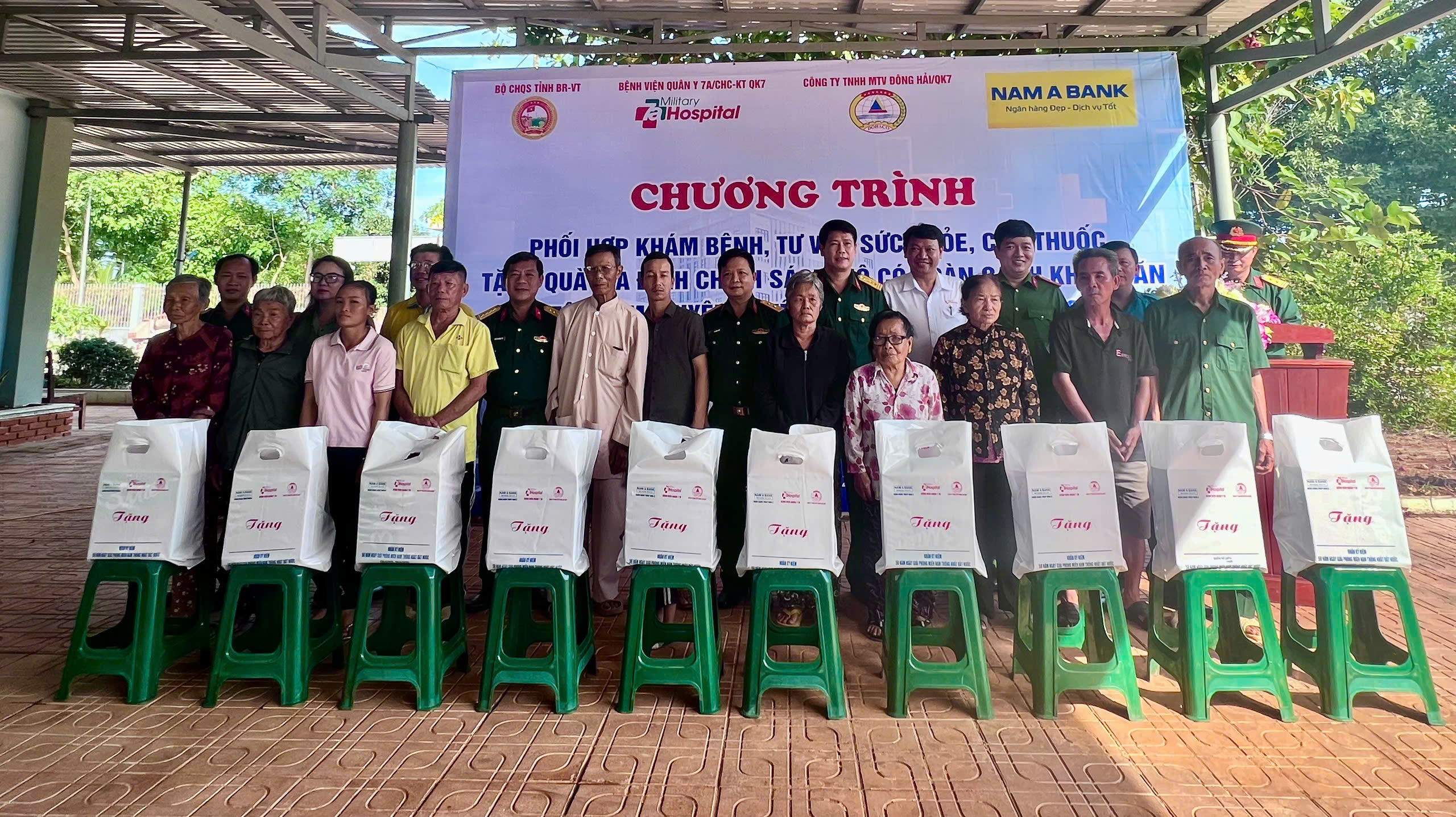 Sáng 27/4, Bộ CHQS tỉnh phối hợp với Bệnh viện Quân y 7A (Cục Hậu cần kỹ thuật, Quân khu 7), Công ty TNHH MTV Đông Hải và Ngân hàng Nam Á Bank tổ chức chương trình khám bệnh, tư vấn sức khỏe, cấp thuốc, tặng quà cho 300 gia đình chính sách, hộ có hoàn cảnh khó khăn tại xã Tân Lâm, huyện Xuyên Mộc.