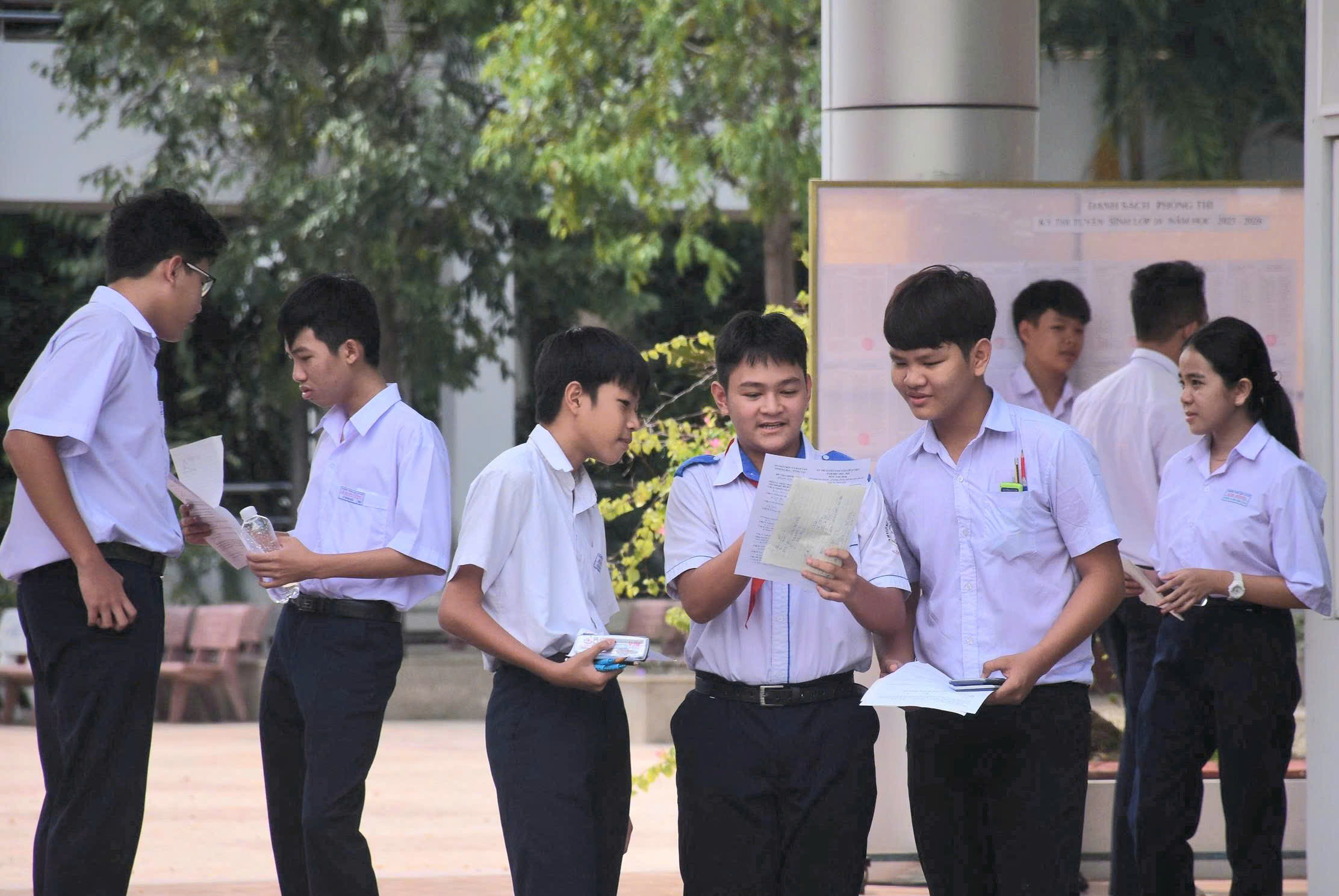 | Thí sinh thảo luận sau khi hoàn thành bài thi môn Toán. |