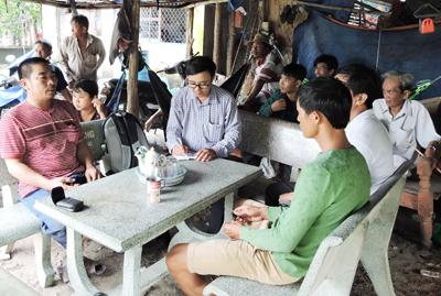 | Người dân ấp 1, xã Tóc Tiên phản ánh với phóng viên về tình trạng ô nhiễm do trại heo Hắc Dịch gây ra. |