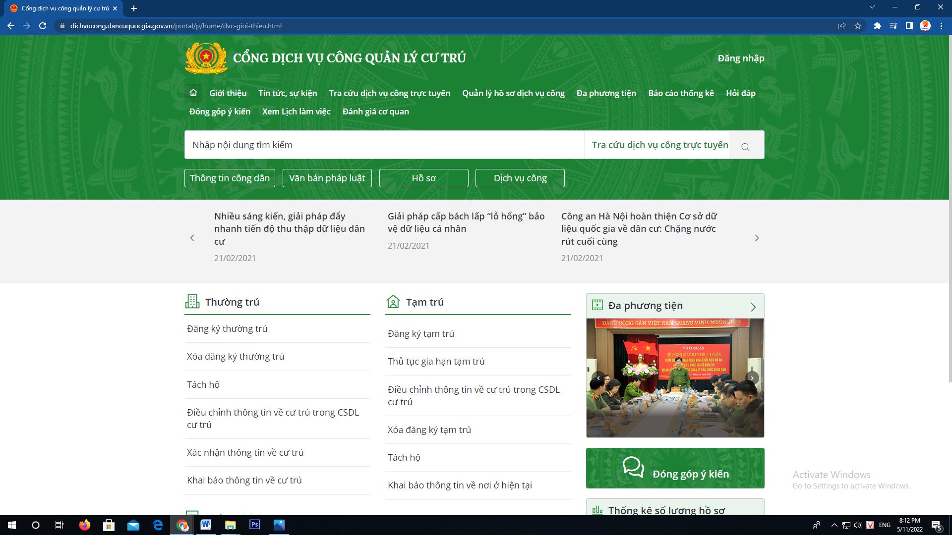 | Đăng kí tạm trú, tạm vắng online tại địa chỉ https://dichvucong.dancuquocgia.gov.vn |