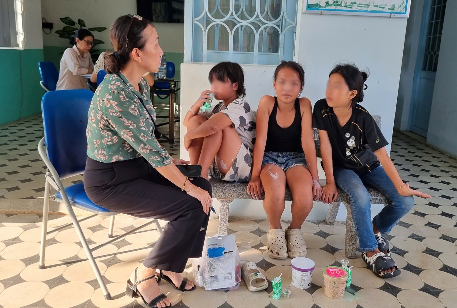 | Cán bộ Trung tâm Công tác xã hội và Bảo trợ Trẻ em tiếp nhận 3 chị em Nguyễn Thị Th., Nguyễn Thị M., và Nguyễn Thị T. |