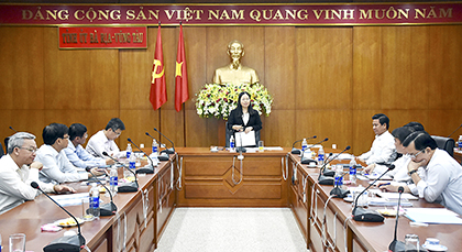 | Đồng chí Nguyễn Thị Yến, Phó Bí thư Thường trực Tỉnh ủy phát biểu kết luận cuộc họp. |