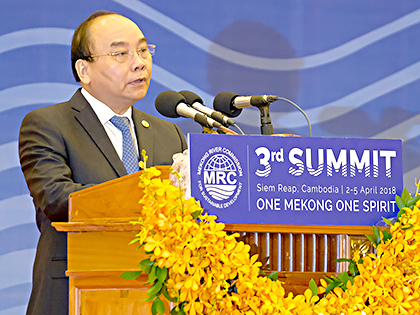 Nhận lời mời của Thủ tướng Vương quốc Campuchia Samdech Techo Hun Sen, Thủ tướng Chính phủ Nguyễn Xuân Phúc đã dẫn đầu đoàn đại biểu Việt Nam tham dự Hội nghị Cấp cao lần thứ ba Ủy hội sông Mekong quốc tế (MRC) từ ngày 4 đến 5-4 tại Siêm Riệp, Campuchia