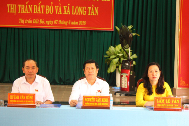 Chuẩn bị cho kỳ họp thứ 8, HĐND tỉnh khóa VI (dự kiến diễn ra từ ngày 18 đến 20-7), ngày 7-6, các tổ đại biểu HĐND tỉnh tiếp tục tiếp xúc cử tri (TXCT) các phường: Thắng Nhì, 3, 7, xã Long Sơn (TP.Vũng Tàu); xã Phước Tỉnh (huyện Long Điền); các xã: Long Tân, Phước Long Thọ, Láng Dài và thị trấn Đất Đỏ (huyện Đất Đỏ); các xã: Tân Hải, Tân Hòa (TX.Phú Mỹ); các xã: Bình Ba, Suối Nghệ, Láng Lớn, Suối Rao, Sơn Bình và thị trấn Ngãi Giao (huyện Châu Đức); xã Xuyên Mộc, thị trấn Phước Bửu (huyện Xuyên Mộc).