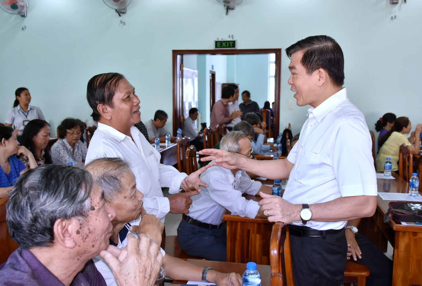 | Đại biểu Nguyễn Hồng Lĩnh, Ủy viên Trung ương Đảng, Bí thư Tỉnh ủy, Chủ tịch HĐND tỉnh trao đổi với cử tri phường 3 (TP. Vũng Tàu). Ảnh: PHÚC LƯU |