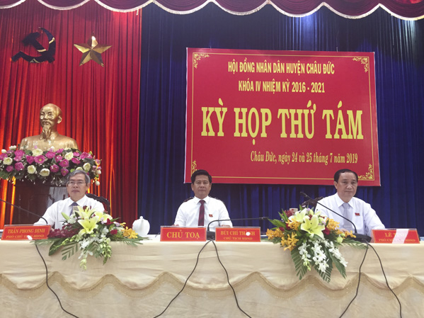 Ngày 24/7, Kỳ họp thứ 8, HĐND huyện Châu Đức khóa IV, nhiệm kỳ 2016-2021 đã khai mạc. Kỳ họp nhằm đánh giá tình hình thực hiện các nhiệm vụ kinh tế-xã hội 6 tháng đầu năm và đề ra phương hướng nhiệm vụ 6 tháng cuối năm 2019.