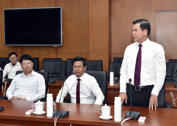 | Ông Nguyễn Hồng Lĩnh, Ủy viên Trung ương Đảng, Bí thư Tỉnh ủy, Chủ tịch HĐND tỉnh phát biểu giao nhiệm vụ cho ông Bùi Chí Thành. |