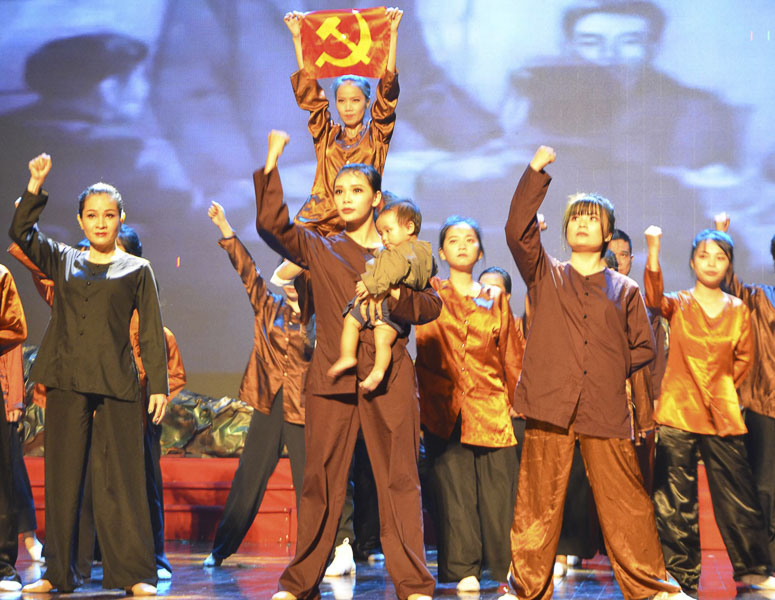 | Tiết mục sân khấu hóa của đơn vị Đảng bộ TP.Vũng Tàu tái hiện chiến thắng Điện Biên Phủ. |