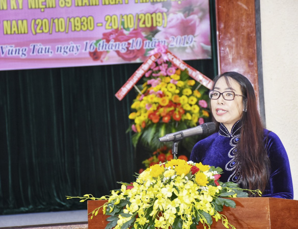 | Bà Trần Thị Thanh Thủy, Phó Chủ tịch LĐLĐ TP.Vũng Tàu ôn lại kỷ niệm Ngày thành lập Hội LHPN và Ngày Phụ nữ Việt Nam. |