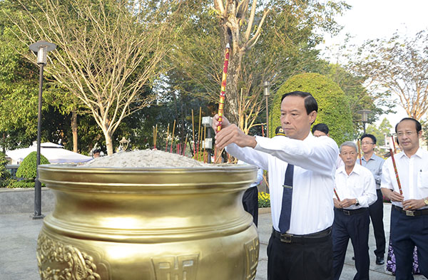 | Các đại biểu dâng hương tưởng niệm AHLLVTND - Liệt sĩ Võ Thị Sáu tại khu tưởng niệm. |