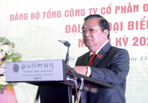 | Đồng chí Trần Minh Phú, Phó Bí thư Đảng ủy, Phó Chủ tịch HĐQT DIC Corp trình bày Báo cáo chính trị tại Đại hội. |