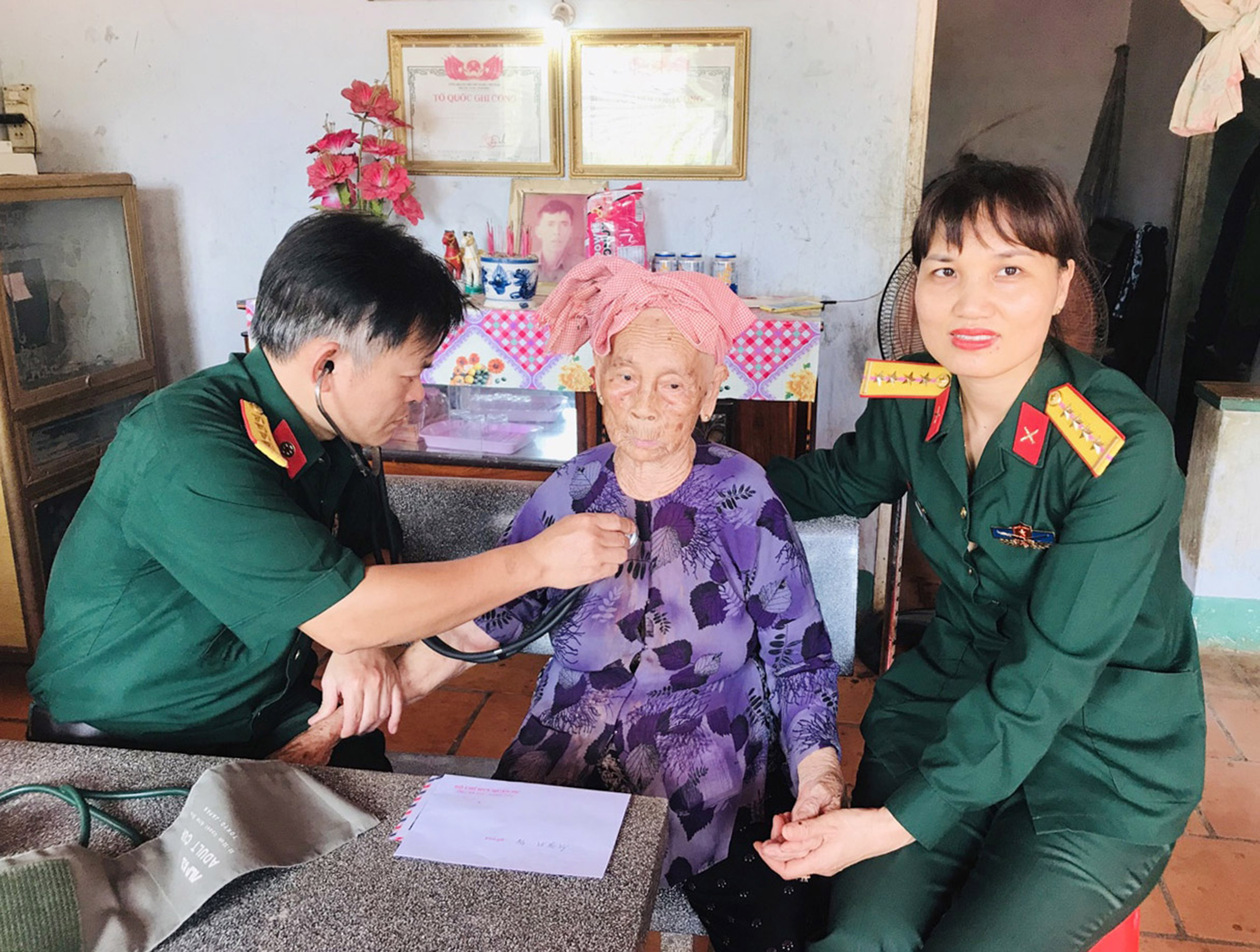 | Các bác sĩ quân y Bộ CHQS tỉnh khám sức khỏe cho Mẹ VNAH Võ Thị Vĩ (KP.Phước Sơn, TT.Đất Đỏ, huyện Đất Đỏ) hồi đầu tháng 7/2020. |