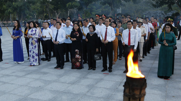 | Đoàn công tác tỉnh Bà Rịa - Vũng Tàu và TP. Hồ Chí Minh dâng hương tại Nghĩa trang Hàng Dương. Ảnh: TTO |