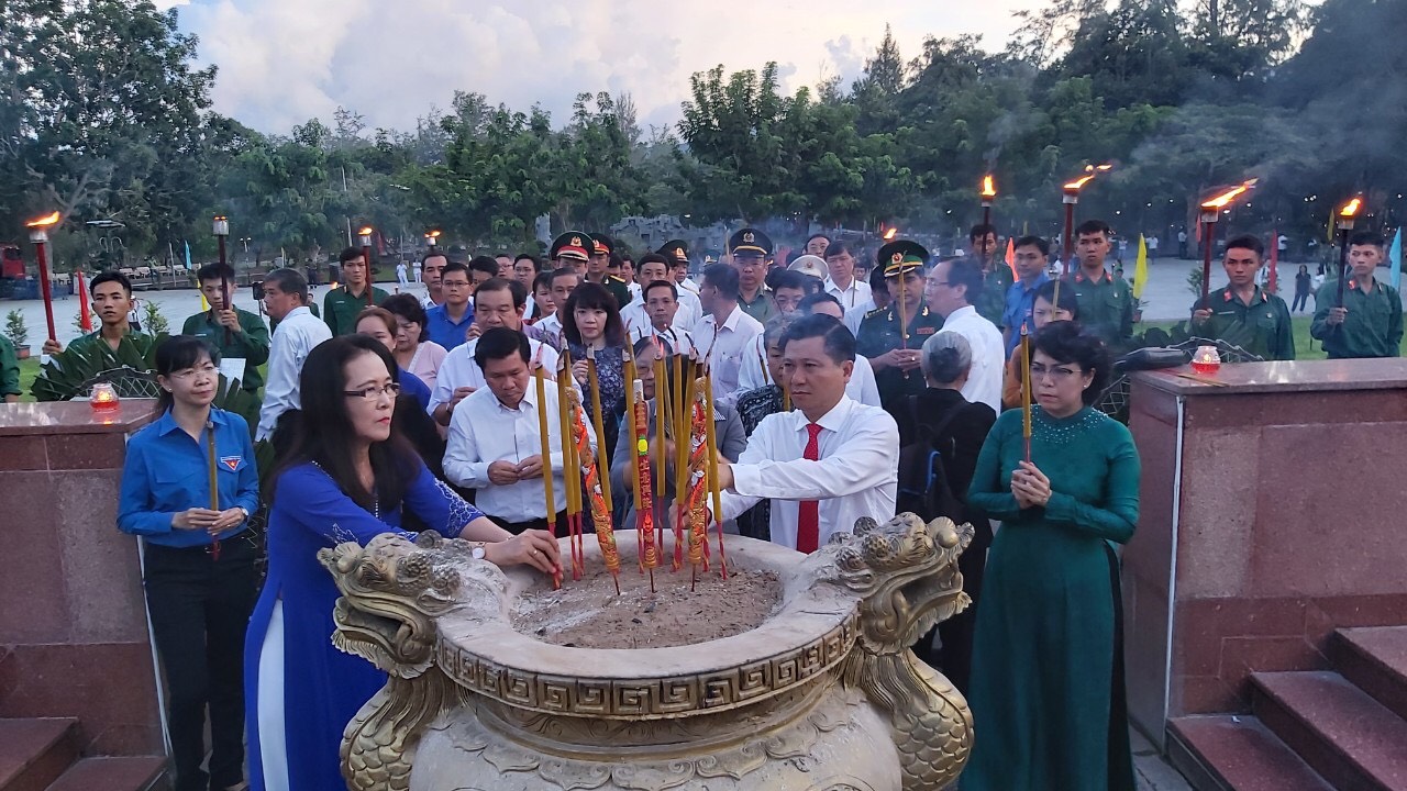 | Nghi thức rước đuốc bày tỏ tri ân các anh hùng liệt sĩ. Ảnh: TTO |