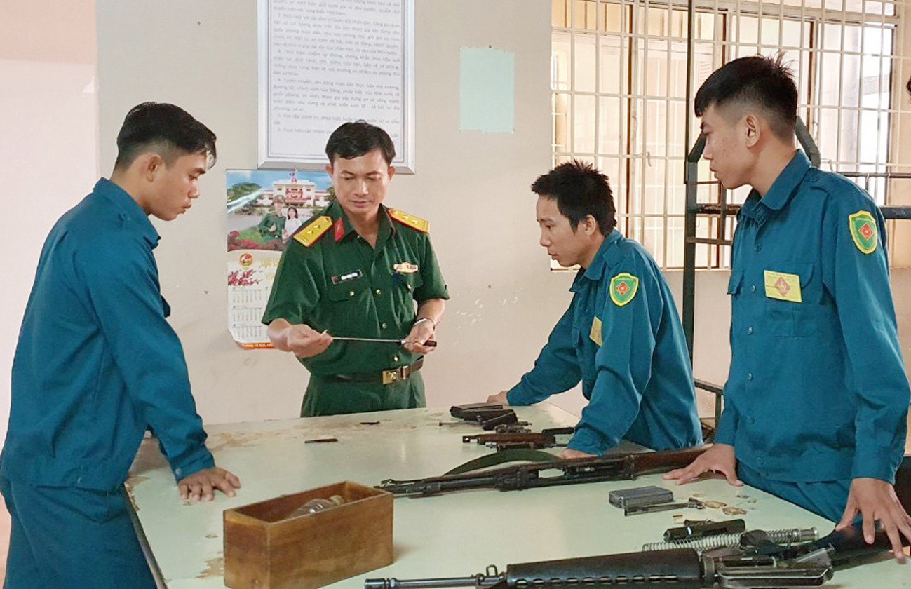 | Cán bộ, chiến sĩ LLVT huyện Long Điền bảo dưỡng các loại vũ khí phục vụ huấn luyện. |