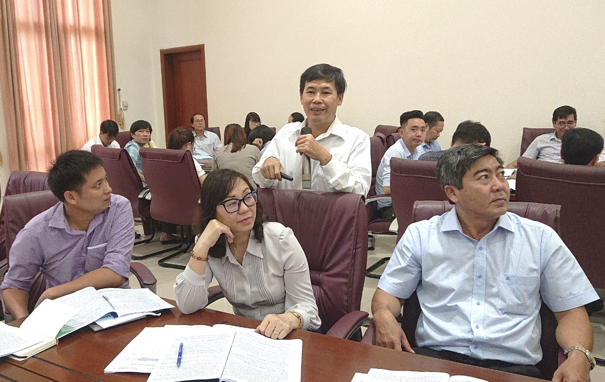 | Ông Nguyễn Việt Dũng, Chủ tịch CĐVC tỉnh trao đổi với các thành viên Ban TTND về quy trình giám sát tại lớp tập huấn. |