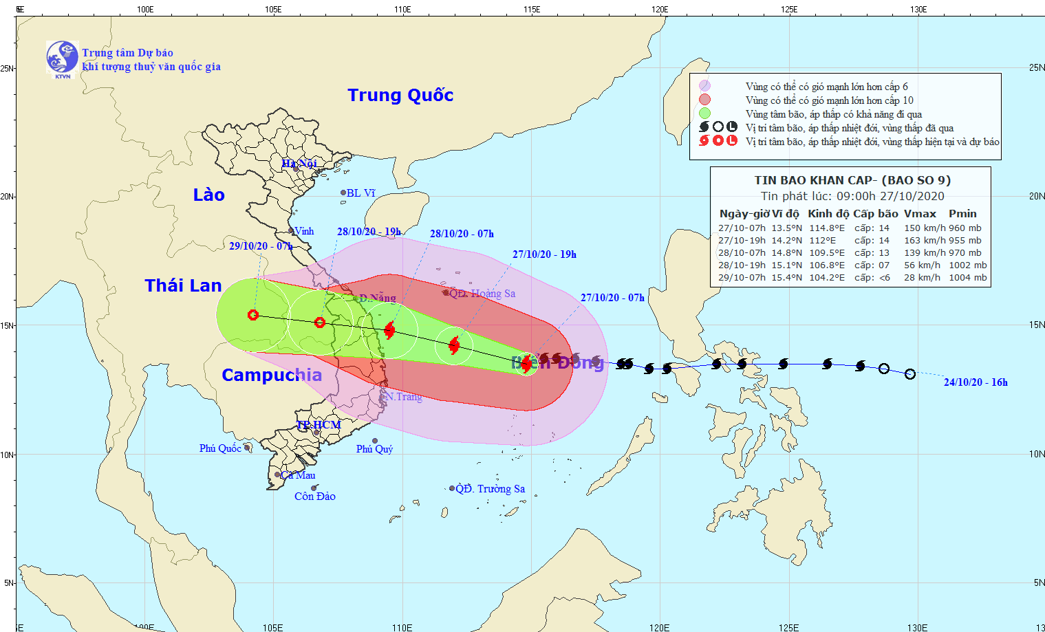 | Vị trí và đường đi của cơn bão số 9. Ảnh: KTTV. |