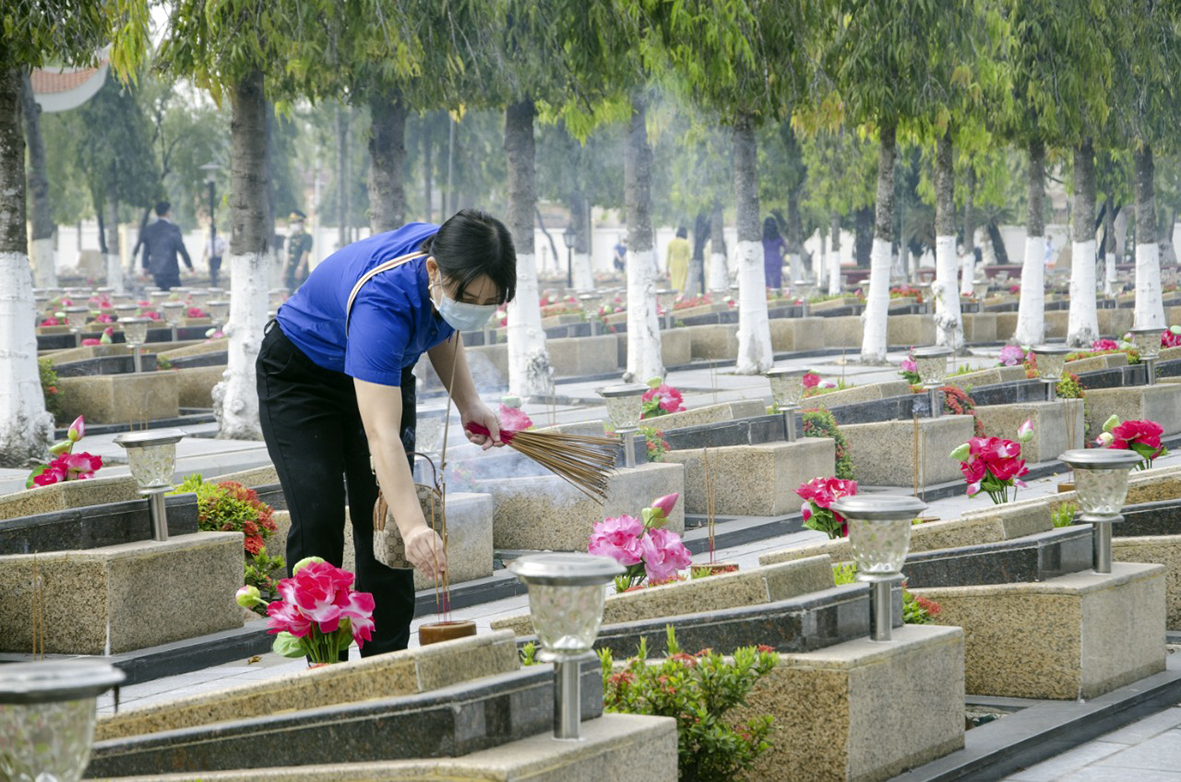 | Các tầng lớp nhân dân thắp hương tại các phần mộ liêt sĩ. |