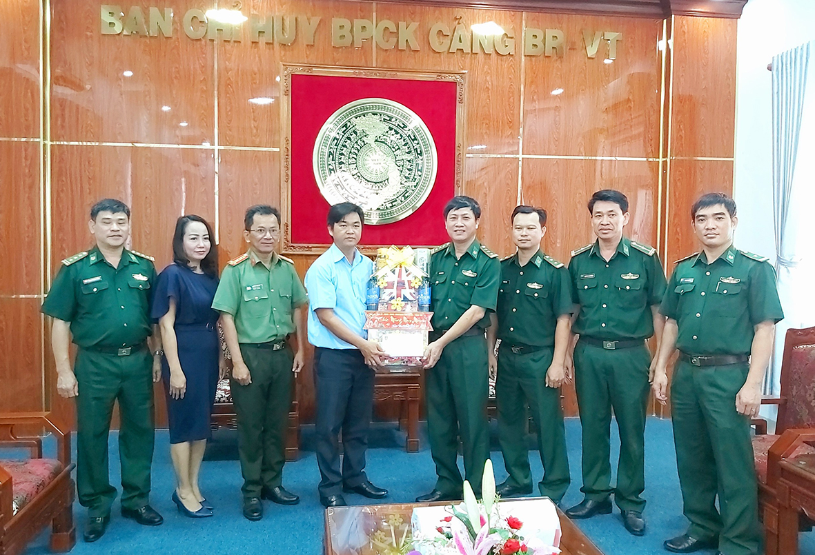 | Ông Lê Văn Minh, Tỉnh ủy viên, Phó Trưởng Ban Tuyên giáo Tỉnh ủy thăm, chúc Tết, tặng quà Ban Chỉ huy Biên phòng Cửa khẩu cảng BR-VT. |
