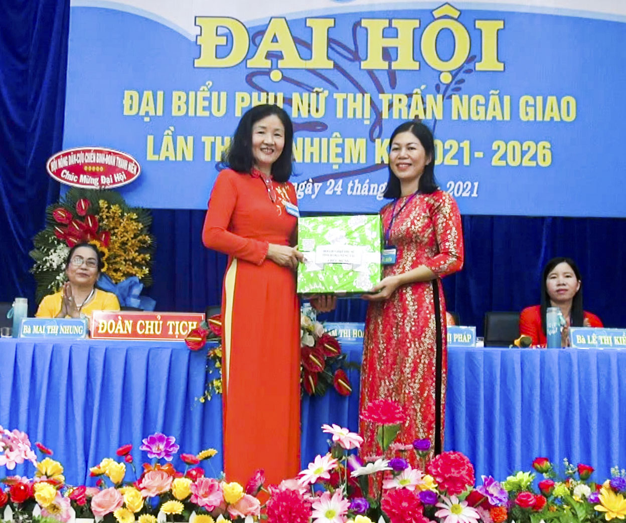 | Đoàn Chủ tịch điều hành Đại hội Đại biểu Phụ nữ TT. Ngãi Giao lần thứ VI, nhiệm kỳ 2021-2026. |