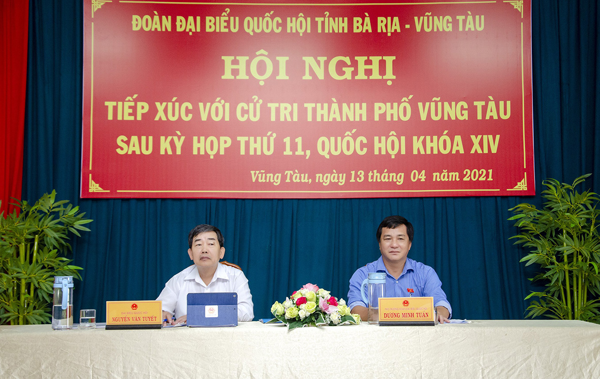 Tiếp tục chương trình tiếp xúc cử tri (TXCT) sau Kỳ họp thứ 11, Quốc hội khóa XIV, sáng 13/4, Đoàn ĐBQH tỉnh gồm các đại biểu: Nguyễn Văn Tuyết, Phó Chủ nhiệm Ủy ban Văn hóa, Giáo dục, Thanh niên, Thiếu niên và Nhi đồng của Quốc hội; Dương Minh Tuấn, Phó Trưởng Đoàn ĐBQH tỉnh đã có buổi TXCT trên địa bàn TP. Vũng Tàu.