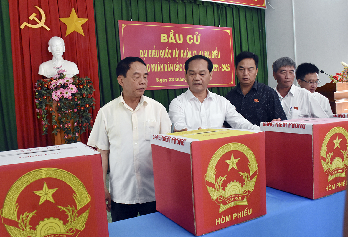 UBBC tỉnh đã xây dựng 7 địa điểm bỏ phiếu mẫu tại 7 huyện, thị, xã, thành phố, bảo đảm đầy đủ các nội dung theo hướng dẫn của Bộ Nội vụ để các tổ bầu cử tham quan học tập. UBBC tỉnh sử dụng 4 hòm phiếu theo đúng quy cách, hướng dẫn tại các khu vực bỏ phiếu để thực hiện bỏ phiếu bầu cử ĐBQH, đại biểu HĐND 3 cấp riêng biệt. Đối với khu vực bỏ phiếu riêng, sử dụng 1 hòm phiếu để bầu ĐBQH và đại biểu HĐND các cấp; mỗi khu vực bỏ phiếu có thêm 1 hòm phiếu phụ.