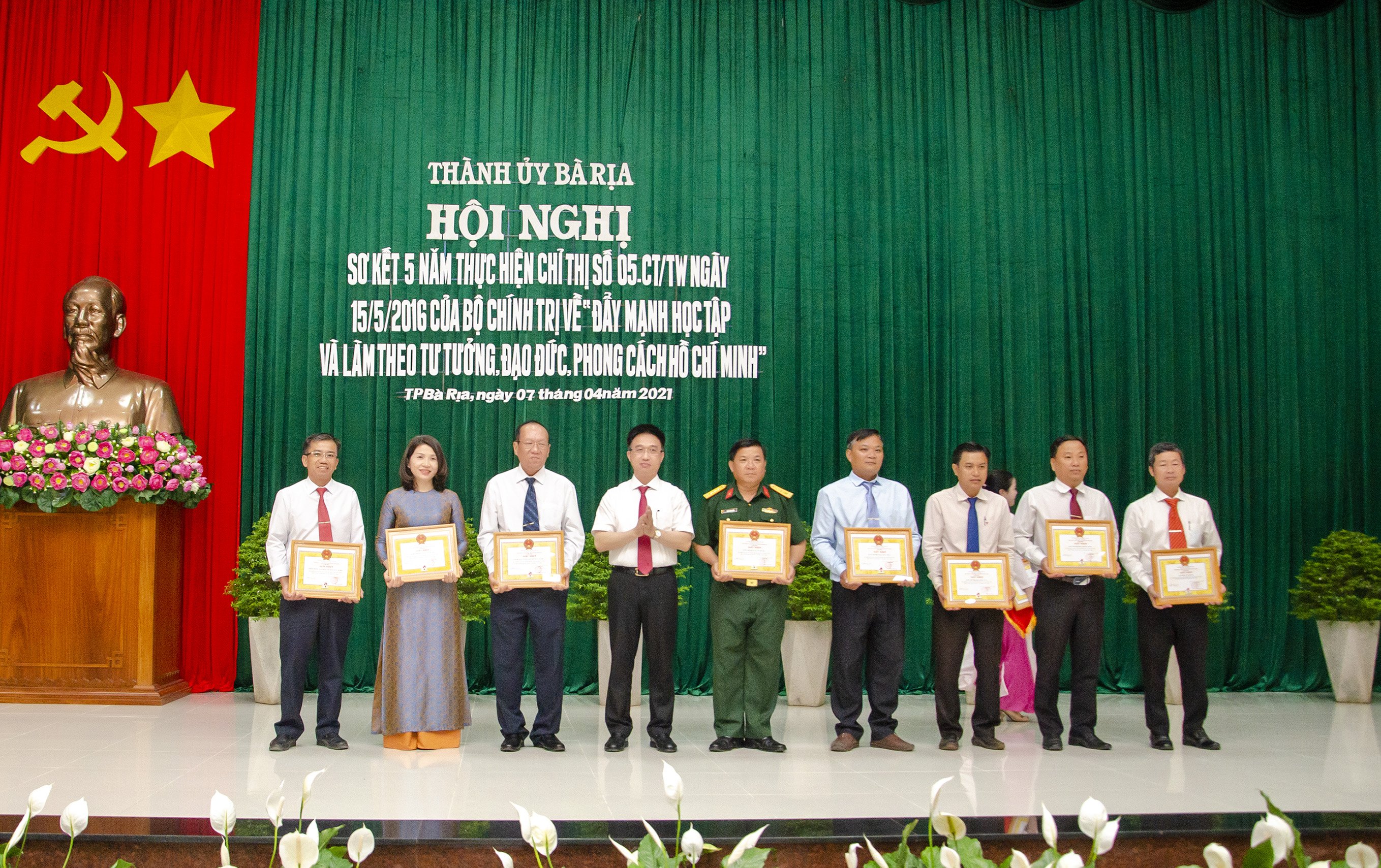 Dịp này, UBND TP. Bà Rịa đã tặng Giấy khen cho 10 tập thể, 20 cá nhân có thành tích xuất sắc trong triển khai thực hiện Chỉ thị số 05 giai đoạn 2016-2021.