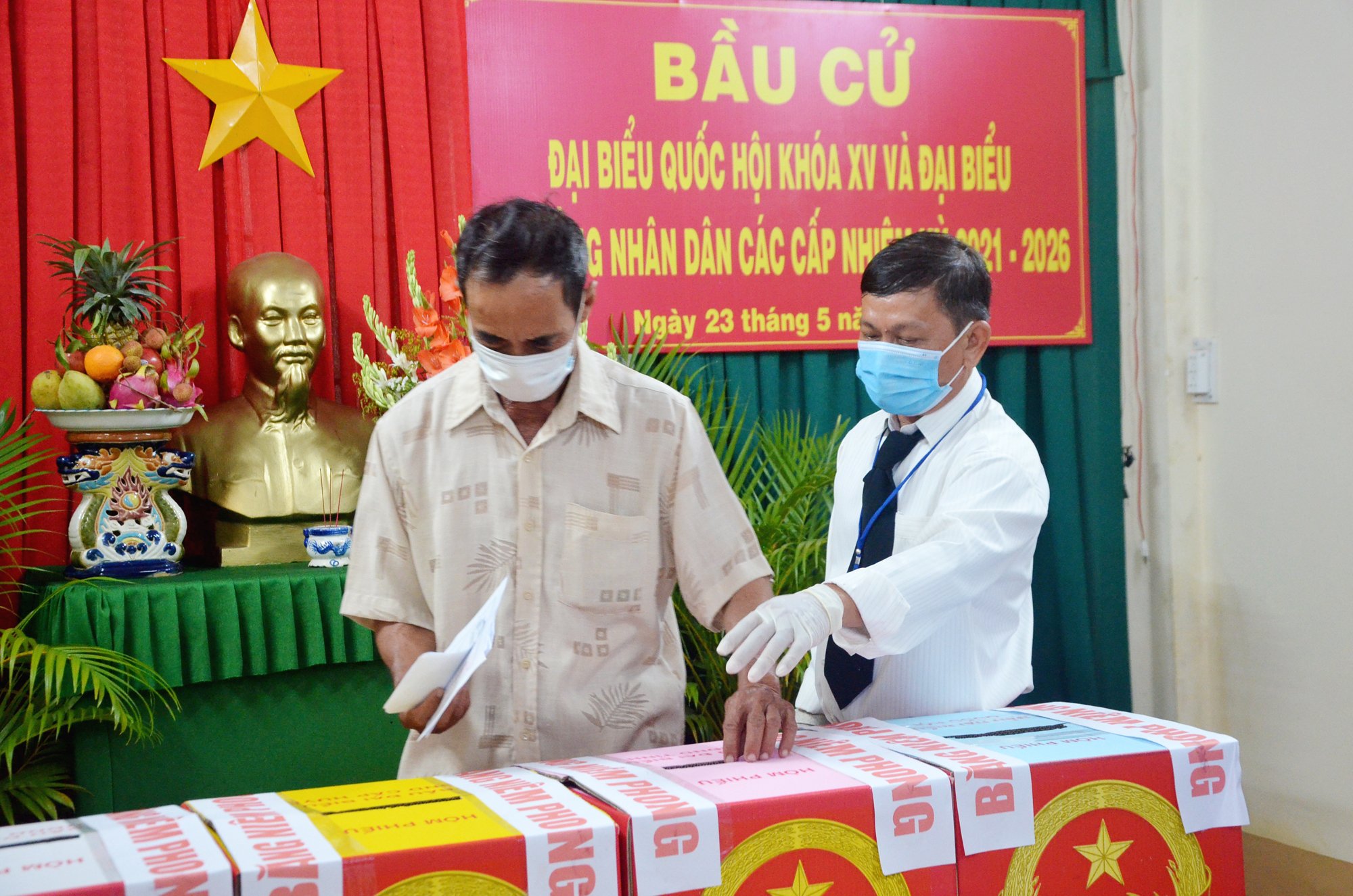 | 100% cử tri huyện Đất Đỏ đã đi bầu cử. Trong ảnh: Cử tri bỏ phiếu tại khu vực bầu cử số 14, thị trấn Đất Đỏ, huyện Đất Đỏ sáng 23/5/2021.Ảnh: VÂN ANH |