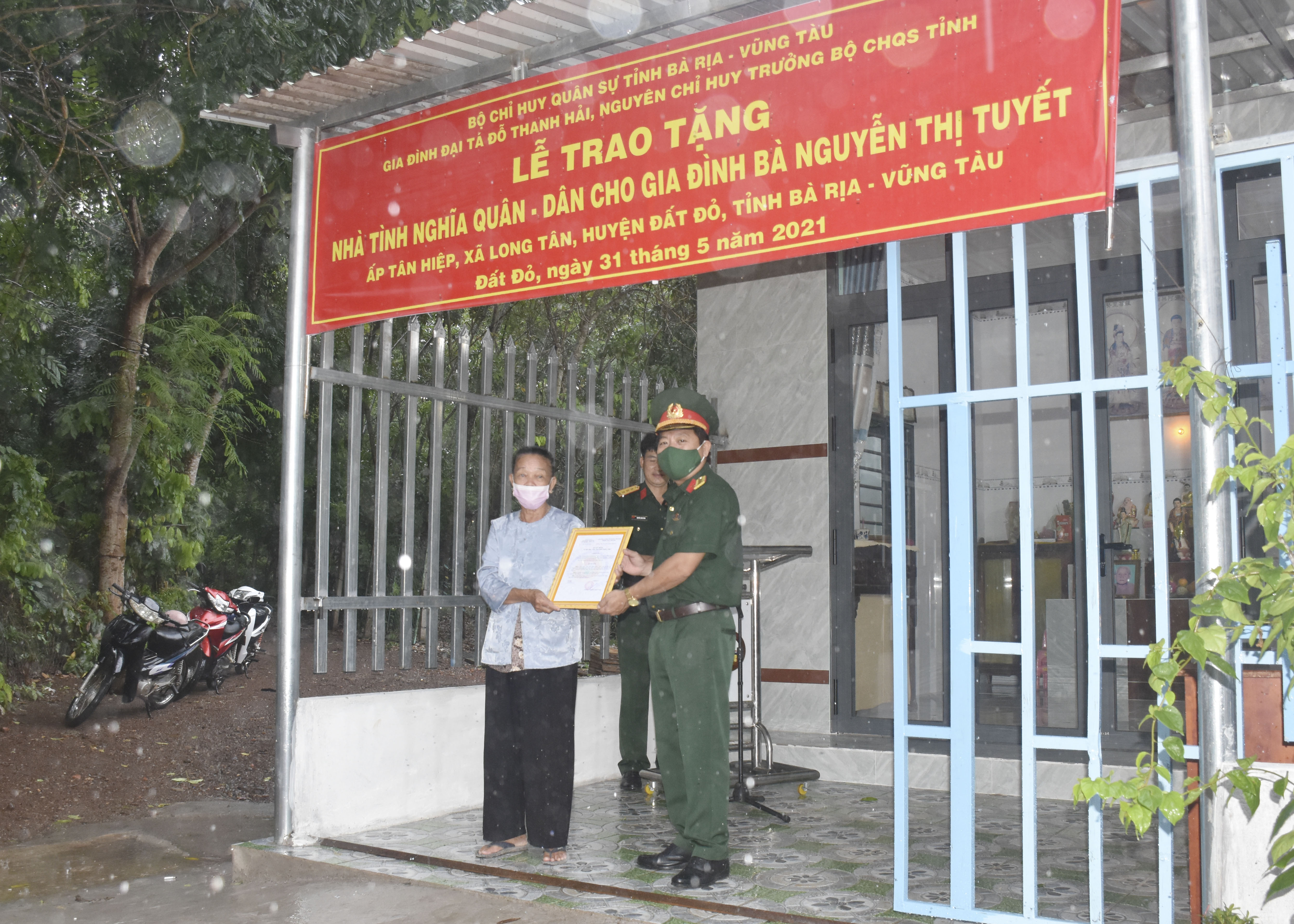 Chiều 31/5, Bộ Chỉ huy Quân sự (CHQS) tỉnh phối hợp Đảng ủy, UBND xã Long Tân, huyện Đất Đỏ tổ chức Lễ bàn giao “Nhà tình nghĩa quân - dân” cho gia đình bà Nguyễn Thị Tuyết (mẹ liệt sĩ, ngụ tại tổ 10, ấp Tân Hiệp, xã Long Tân), có hoàn cảnh khó khăn về nhà ở.