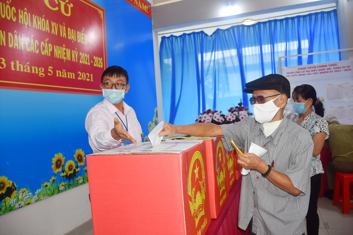 | Cử tri Mai Ngọc Thuận, Ủy viên Ban Thường vụ Tỉnh ủy, Phó Chủ tịch HĐND tỉnh, Phó Chủ tịch Thường trực UBBC tỉnh bỏ phiếu tại khu vực bỏ phiếu số 4 và số 5 (84, Hoàng Hoa Thám, phường 2, TP. Vũng Tàu). Ảnh: MINH THIÊN |