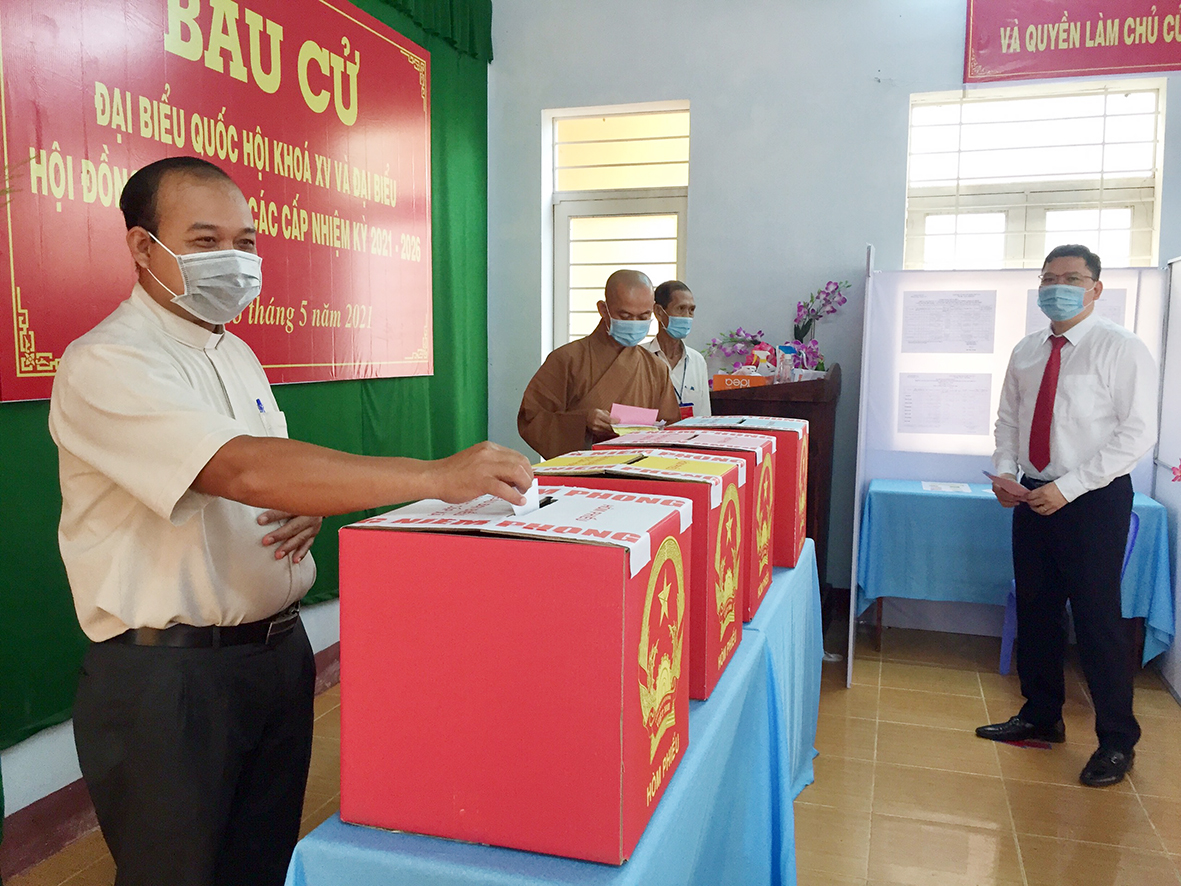 | Linh mục Giu sê Trần Quốc Dân, Chánh xứ Kim Long bỏ phiếu tại Khu vực bỏ phiếu số 4, thuộc thôn Lạc Long, xã Kim Long, huyện Châu Đức. |