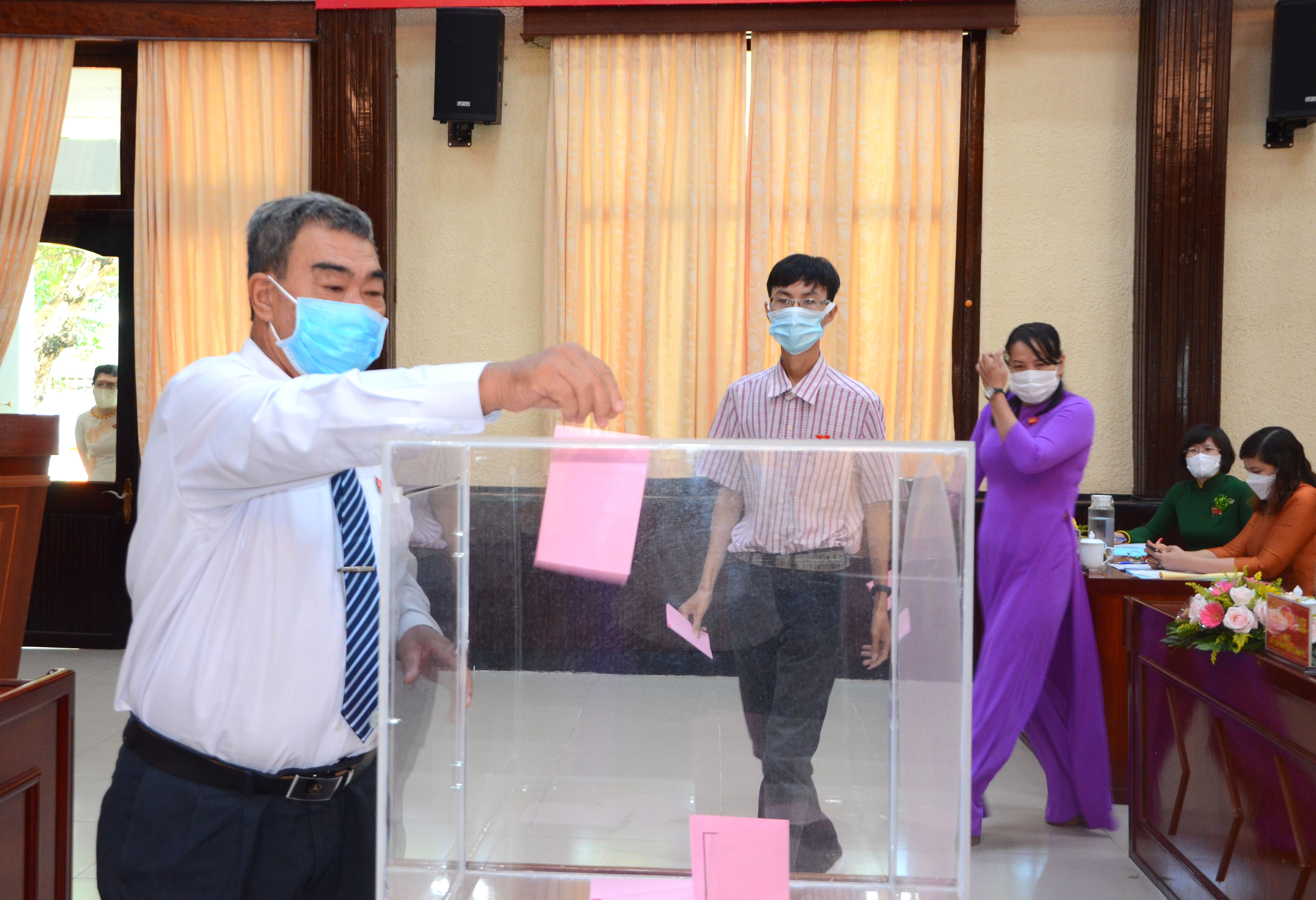 | Các đại biểu bỏ phiếu bầu chức danh Chủ tịch HĐND phường 1 khóa XI, nhiệm kỳ 2021-2026. |