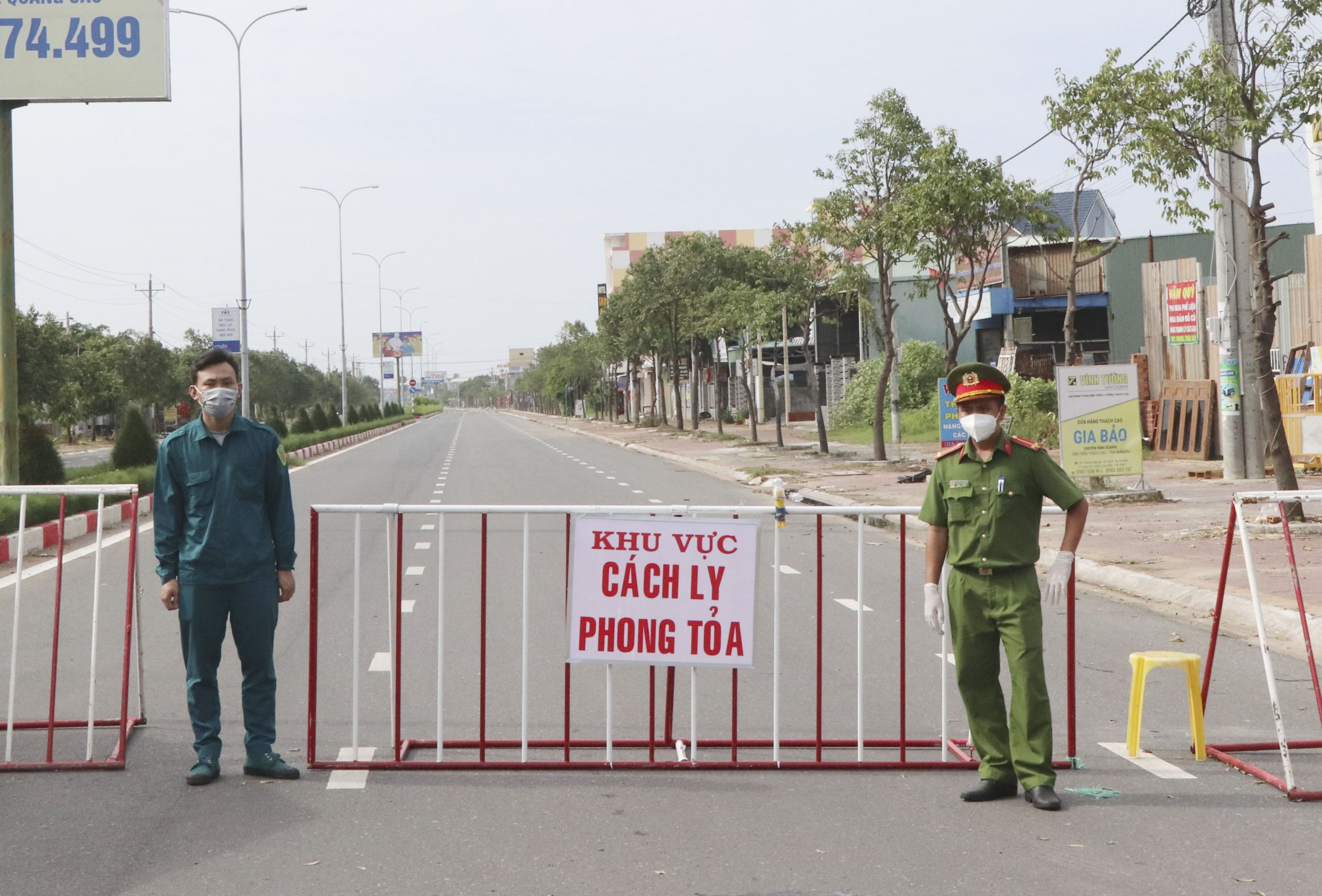 | Trên các tuyến đường dẫn vào TT. Long Hải (huyện Long Điền) sáng 21/7 đều thiết lập các chốt kiểm soát chặt các khu vực phong tỏa. Ảnh: ĐINH HÙNG |