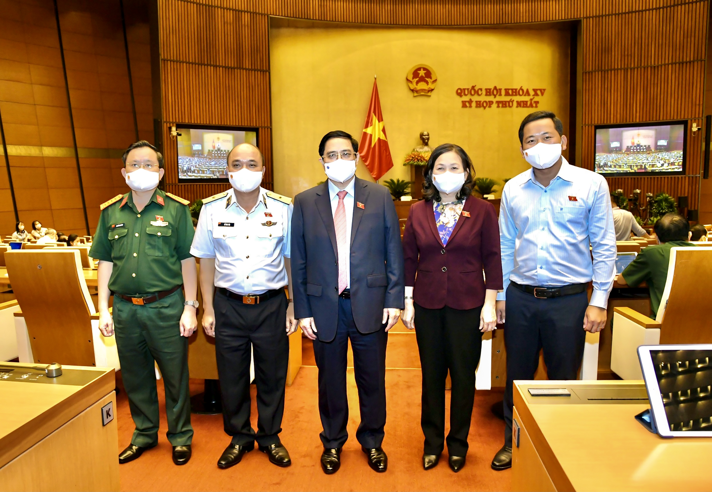 | Các ĐBQH tỉnh Bà Rịa - Vũng Tàu chụp hình lưu niệm cùng Thủ tướng Chính phủ Phạm Minh Chính tại Kỳ họp thứ Nhất, Quốc hội khóa XV. Ảnh: CHÂU VŨ. |