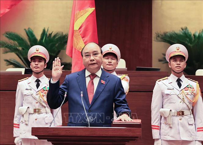 "Dưới cờ đỏ thiêng liêng của Tổ quốc, trước Quốc hội và đồng bào, cử tri cả nước, tôi, Chủ tịch nước CHXHCN Việt Nam Việt Nam, xin tuyên thệ: Tuyệt đối trung thành với Tổ quốc, với nhân dân, với Hiến pháp nước CHXH Việt Nam, ra sức công tác để hoàn thành tốt nhiệm vụ mà Đảng, Nhà nước và nhân dân giao phó", Chủ tịch nước Nguyễn Xuân Phúc tuyên thệ.