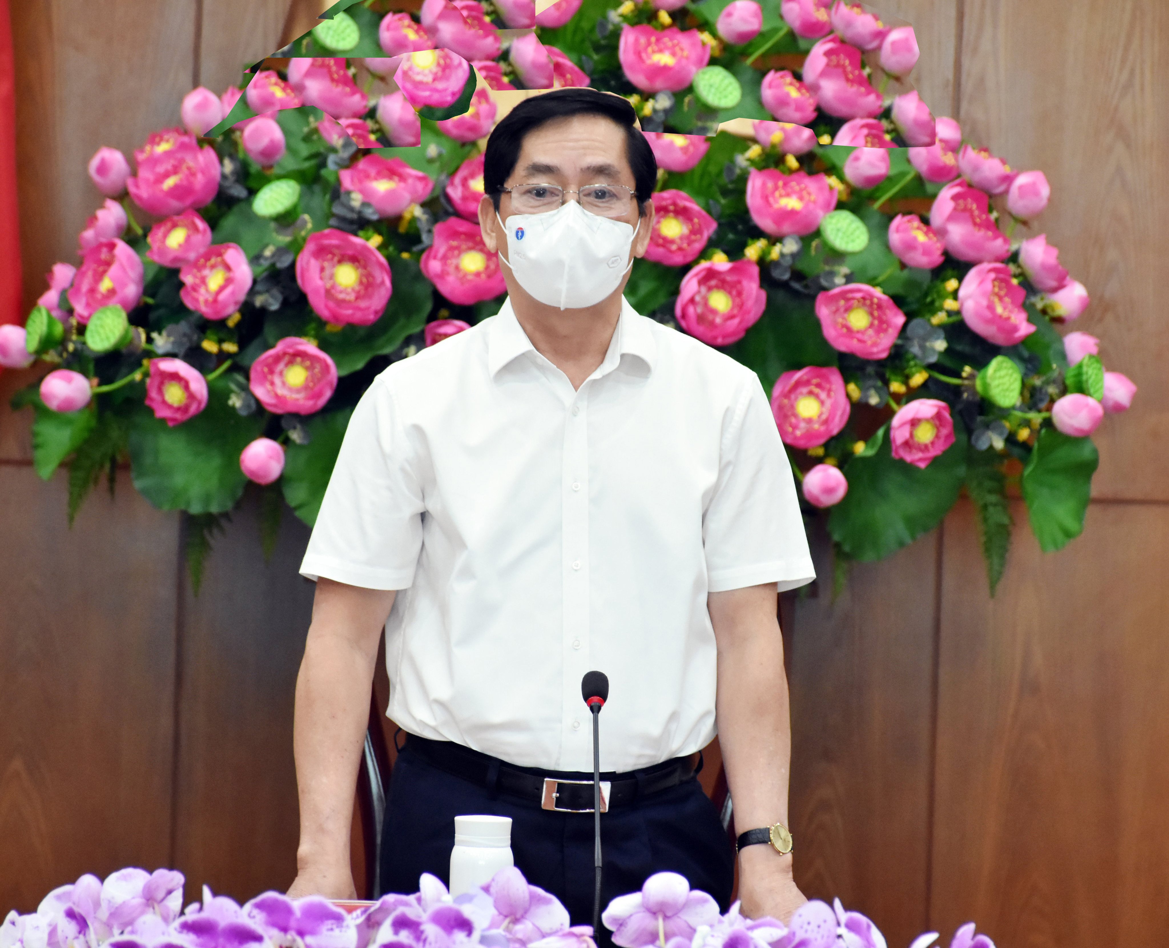 | Ông Phạm Viết Thanh, Ủy viên Trung ương Đảng, Bí thư Tỉnh ủy, Chủ tịch HĐND tỉnh phát biểu tại cuộc họp Ban Thường vụ Tỉnh ủy về công tác phòng, chống dịch COVID-19. |