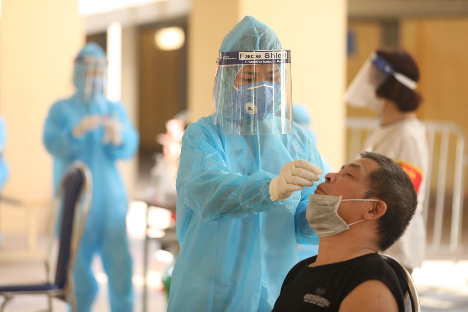 | Nhân viên y tế lấy mẫu xét nghiệm COVID-19 cho các trường hợp thuộc khu vực có nguy cơ cao. Ảnh: Minh Quyết/TTXVN. |