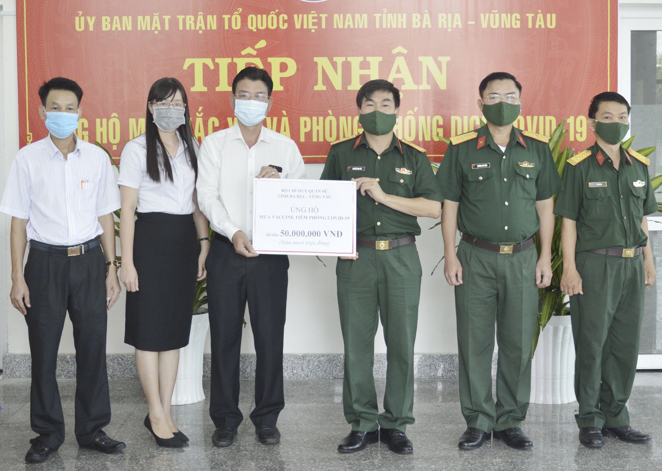 | Đại diện Bộ CHQS tỉnh BR-VT trao 50 triệu đồng ủng hộ Quỹ vắc xin và phòng, chống COVID-19 tỉnh. |