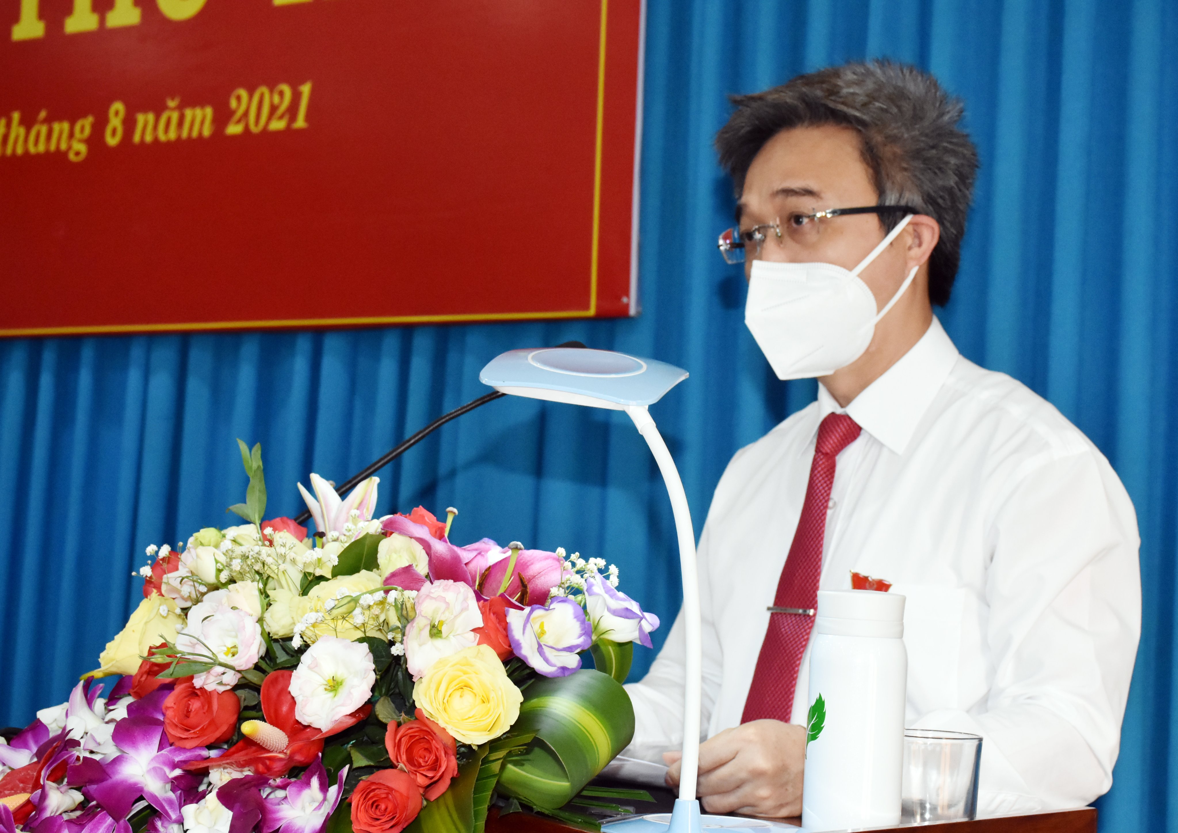 | Ông Trần Vinh Quang, Chủ tịch UBND TP.Bà Rịa báo cáo tóm tắt tình hình kinh tê-xã hội 6 tháng đầu năm 2021. |