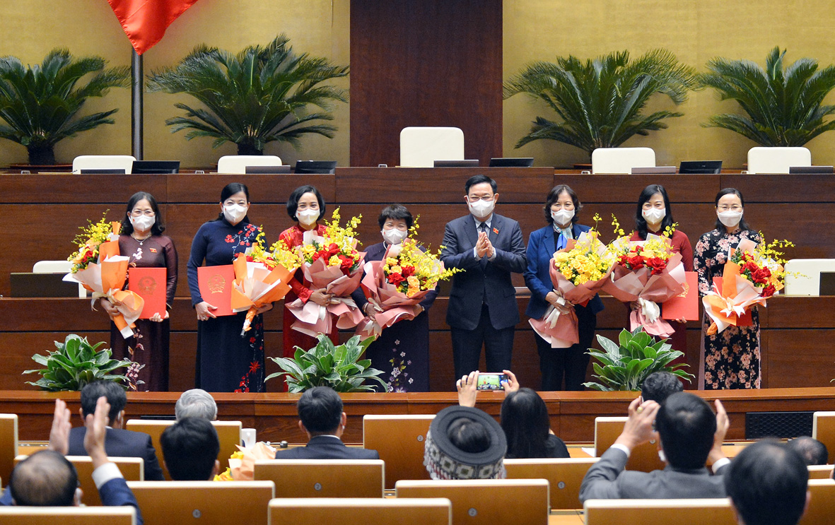 Tối 8/11, Chủ tịch Quốc hội Vương Đình Huệ trao Nghị quyết số 409/NQ-UBTVQH15 của Ủy ban Thường vụ Quốc hội về việc thành lập Nhóm Nữ ĐBQH Khóa XV.