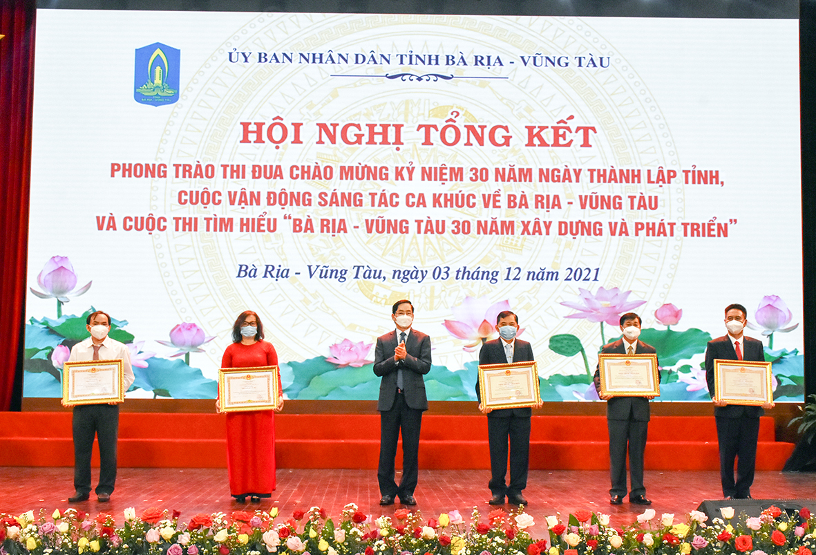 Cũng tại hội nghị, Ban Tổ chức đã trao 3 giải A, 5 giải B, 11 giải C cho những tác giả xuất sắc nhất Cuộc vận động sáng tác ca khúc về BR-VT chào mừng kỷ niệm 30 năm Ngày thành lập tỉnh; trao giải cho 3 tập thể, 37 cá nhân đạt giải Cuộc thi tìm hiểu “BR-VT 30 năm xây dựng và phát triển”.
