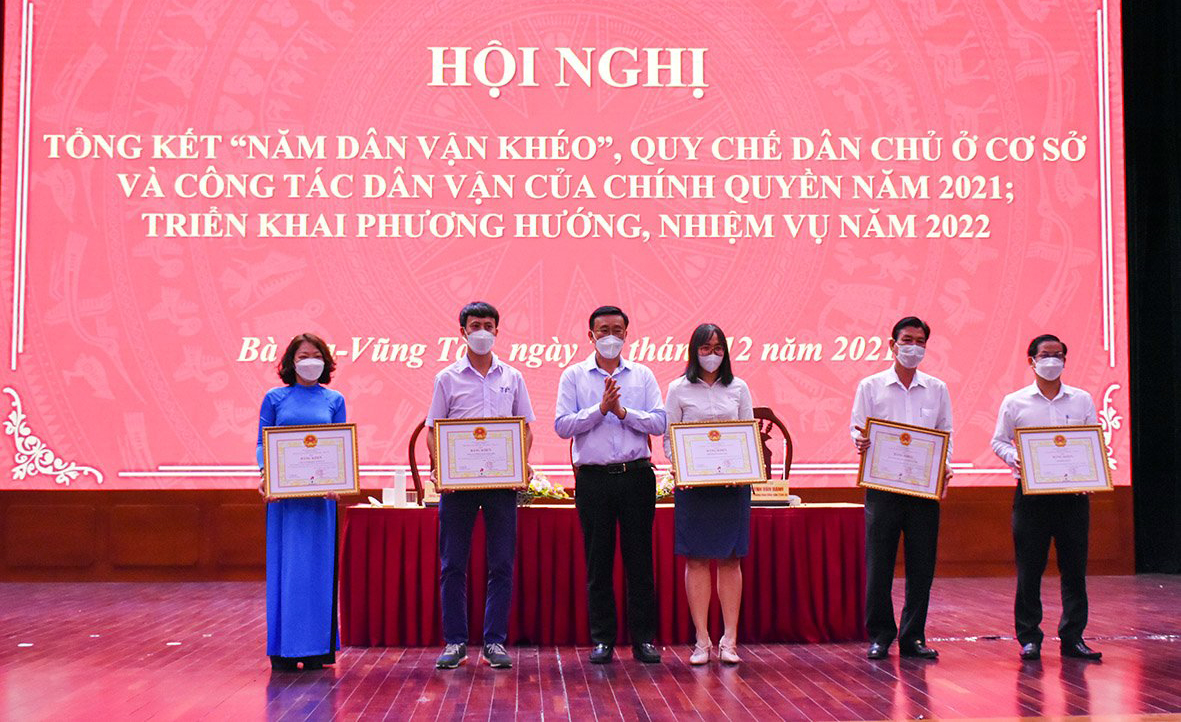 Nhân dịp này, Chủ tịch UBND tỉnh tặng Bằng khen cho 28 tập thể, 12 cá nhân có thành tích xuất sắc trong thực hiện công tác “Dân vận khéo”; 14 tập thể có thành tích xuất sắc trong thực hiện QCDC ở cơ sở và 5 tập thể có thành tích xuất sắc trong thực hiện công tác Dân vận của chính quyền trong năm 2021.