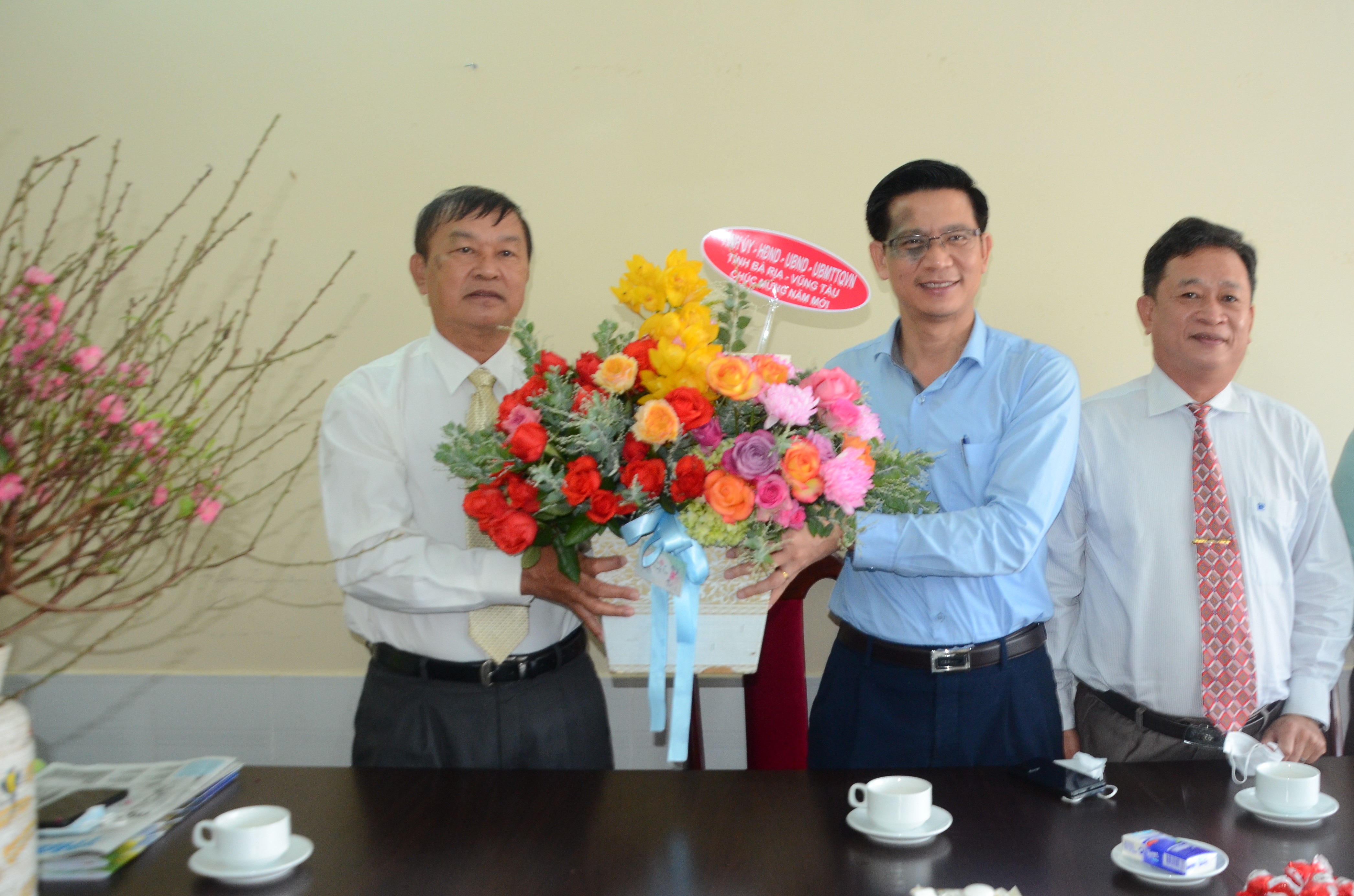 | Ông Lê Văn Tuấn, Giám đốc Sở TT-TT tặng hoa chúc Tết Văn phòng Thường trú Báo Nhân dân tại BR-VT. |