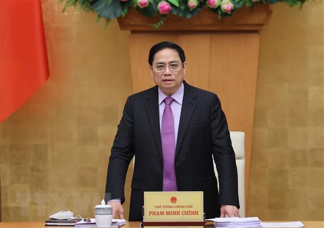 | Thủ tướng Phạm Minh Chính chủ trì phát biểu kết luận cuộc họp. Ảnh: THỐNG NHẤT |