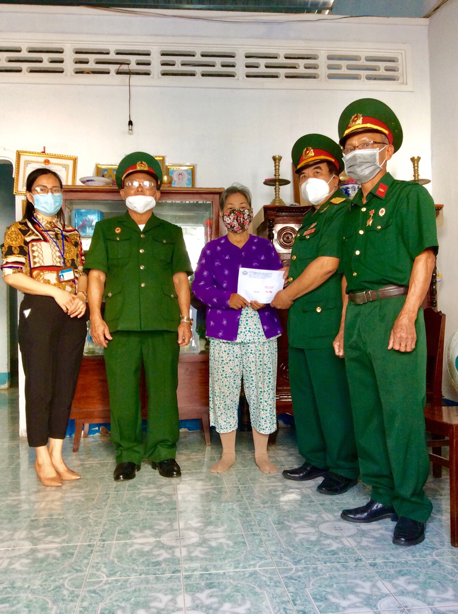 | Đại diện Sư đoàn 3 Sao Vàng thăm và tặng quà bà Nguyễn Thị Bảy (21/8, Nguyễn Bỉnh Khiêm, TP. Vũng Tàu), vợ của liệt sĩ Trương Ngọc - hy sinh trong trận đánh Palace. |