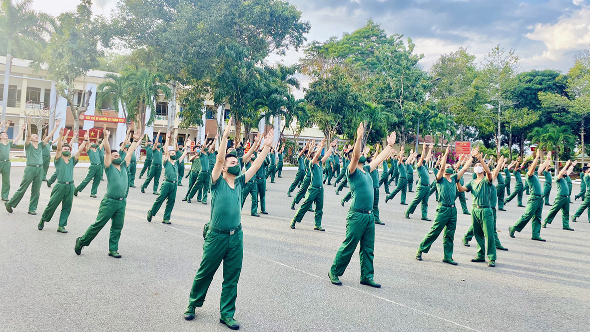 | Thức dậy sớm và khởi đầu ngày mới với các bài tập thể dục trở thành nề nếp mà các chiến sĩ mới tại Trung đoàn Minh Đạm đã quen thuộc. |